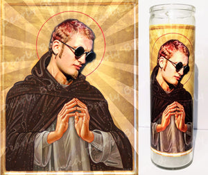 Iconic legends immortalized as saints and heroes on 8" glass jar devotional candles. A take on Prayer Candles, uniquely designed with particular artistry and whimsy to add to any altar of honor.